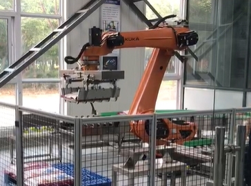 本工作站主要用于紙箱、米袋物料的碼垛作業展示,通過快換夾具實現一抓一吸兩種不同夾爪的快速切換,可兼容不同類型碼垛物料的柔性化碼垛功能。