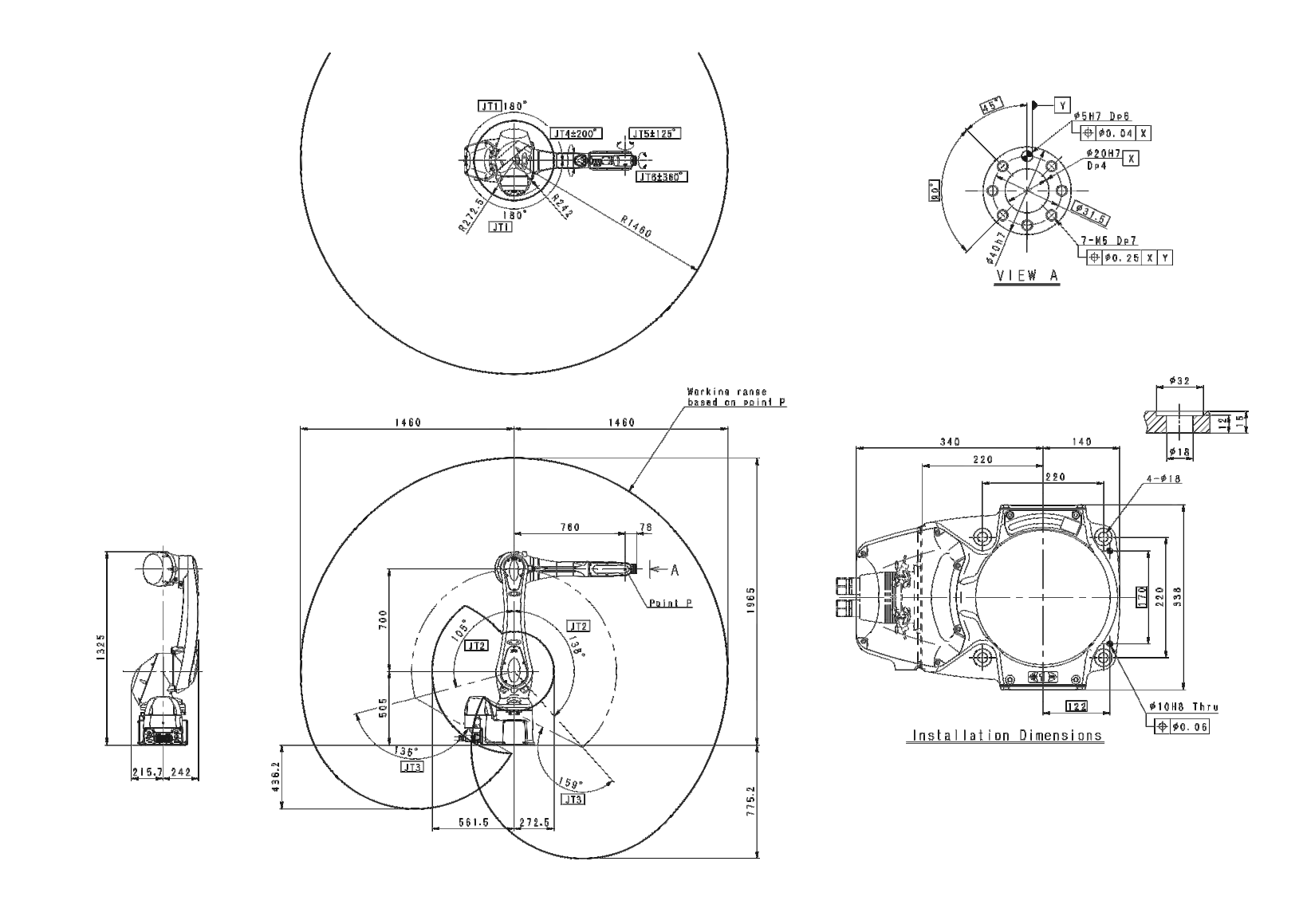 最大行程:+138°至-105° 最大速度:250°/s